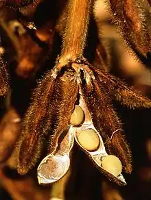 - soja : huile de soja, sauce au soja, lait de soja, margarines à l'huile de soja[19],[20],[16],[10],[Notes 5],[Notes 6] ;