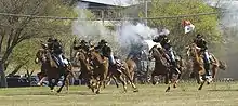 À l'arrivée des Espagnols au XVIe siècle, cela fait plus de 10 000 ans que le cheval a disparu du continent américain. Ce manque constitue un désavantage considérable pour les peuples autochtones qui, dépourvus de chevaux, ignorent comment lutter contre les cavaleries européennes, et aboutit à la conquête des empires aztèques et incas[73]. La vitesse et l'impact de la cavalerie contribuent aux premières victoires européennes en terrain découvert, mais leur succès est limité dans les régions plus montagneuses, même si les routes incas dans la cordillère des Andes permettent aux Espagnols de mener des raids à cheval tout en résistant au siège de Cuzco de 1536 à 1537[74]. Toutefois, les populations indigènes d'Amérique du Sud apprennent rapidement l'usage de la cavalerie. Au Chili, les Mapuches commencent à utiliser des chevaux durant la guerre d'Arauco en 1586. Ils chassent les Espagnols de l'Araucanie au début du XVIIe siècle et continuent de mener des raids, d'abord contre les Espagnols, puis pour juguler les ambitions territoriales des États chilien et argentin pendant une bonne partie du XIXe siècle.