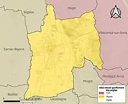Le retrait-gonflement des sols argileux est susceptible d'engendrer des dommages importants aux bâtiments en cas d’alternance de périodes de sécheresse et de pluie. La totalité de la commune est en aléa moyen ou fort (44,5 % au niveau départemental et 48,5 % au niveau national). Sur les 628 bâtiments dénombrés sur la commune en 2019, 628 sont en aléa moyen ou fort, soit 100 %, à comparer aux 75 % au niveau départemental et 54 % au niveau national. Une cartographie de l'exposition du territoire national au retrait gonflement des sols argileux est disponible sur le site du BRGM[18],[Carte 2].