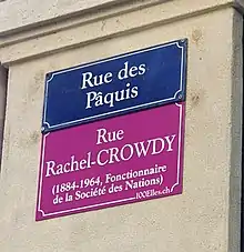 - Michel Marbeau, Rachel Crowdy, in Ziegler Deuber, Erica, Tikhonov, Natalia (dir.), Les Femmes dans la mémoire de Genève, Genève, Editions Susan Hurter, 2005, pp. 178-179[11]