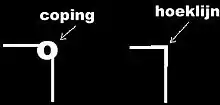 - Le rider s'élance à l'intérieur du pipe depuis l'un des deux copings. On dit qu'il « droppe le coping »