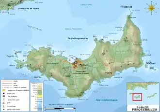 La randonnée se pratique aussi sur l'île de Porquerolles, qui est incluse dans le parc national de Port-Cros[20], tout proche de Port-Cros aussi de dimensions modeste, avec seulement quelques kilomètres de long. La partie occidentale de l’île comporte un parcours de randonnée relativement sportif[20] allant à la plage d’Argent[20] et la calanque du Maure[20] et passant par quelques petites montées surnomées mont de Tiélo et montagne de Robert[20].