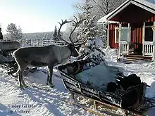Selon la tradition populaire (assez récente), le traîneau du Père Noël est tiré par des rennes (dont Rudolphe, le renne au nez rouge).
