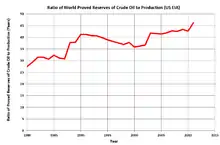 Le ratio réserves sur production (RRP ou R/P) est la quantité restante d'une ressource non renouvelable, exprimée en unité de temps. Bien qu’applicable à toutes les ressources naturelles, le RRP est le plus souvent appliqué aux combustibles fossiles, en particulier le pétrole et le gaz naturel. Les réserves (numérateur du rapport) est la quantité d'une ressource connue pour exister dans une zone et qui est économiquement récupérable (réserves prouvées). La production (dénominateur) est la quantité de ressource extraite par unité de temps (généralement en un an) au rythme actuel[1].