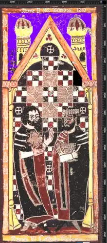 - en 1200 avec la Demoiselle de Chypre[6], fille d’Isaac Doukas Comnène, empereur de Chypre auto-proclamé. Le mariage est annulé probablement fin 1202 ;