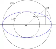 - Le demi grand axe de l'ellipse s'interprète comme le rayon du cercle circonscrit à l'ellipse, ou cercle principal , et le demi petit axe comme le rayon du cercle inscrit, ou cercle secondaire. On peut définir comme "rayon moyen", la moyenne arithmétique de ces deux rayons : .