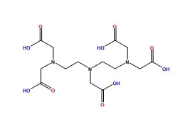 Actuellement[style à revoir], le seul médicament approuvé par la Food and Drug Administration pour traiter la contamination par radionucléides est l'acide diéthylènetriaminepentaacétique (DTPA) (Figure 1). Le DTPA s'est montré prometteur dans le traitement de l'empoisonnement au plutonium, mais ce traitement est spécifique uniquement du plutonium[13]. De plus, le DTPA doit être administré par voie intraveineuse, ce qui pose problème car le syndrome d'irradiation aiguë est extrêmement sensible au temps écoulé avant sa prise en charge. Dans sa quête d’un traitement plus polyvalent et plus facile à administrer contre les intoxications par les radiations, Abergel voit le potentiel du développement de nouvelles classes de produits thérapeutiques.