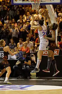 Au basket-ball, le rebond désigne le fait de capter la balle après un tir manqué et avant que celle-ci ne touche le sol.