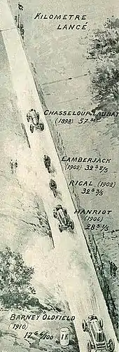 Pour limiter l'interaction du vent, une vitesse moyenne est calculée à partir de deux trajets entre deux points fixes, par un aller et un retour effectués en moins d'une heure d'écarts de temps (depuis la réunion parisienne de l'Association Internationale des Automobile Clubs Reconnus (AIACR), devenue plus tard FIA en décembre 1910)[1].