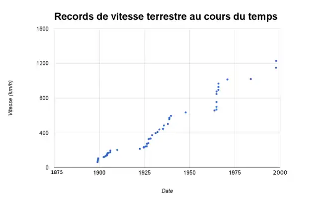 | 15 octobre 1997 | Black Rock Desert, États-Unis | Andy Green | Thrust SSC | Turboréacteur | 1 223,65 | 1 227,99 | Premier record supersonique (Mach 1,016) |