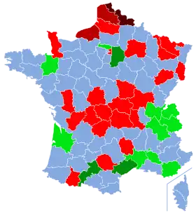 Un autre moyen permet de constater l'accumulation des circonscriptions faiblement peuplées et représentées par la gauche et l'accumulation des circonscriptions surpeuplées représentées par la droite. Huit départements politiquement monocolores sont destinés à perdre un siège ; 5 sont entièrement à gauche (Allier, Charente, Nièvre, Hautes-Pyrénées, Haute-Vienne), 3 à droite (Lozère, Marne, Haut-Rhin).