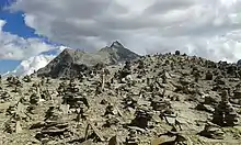 Le col du Carro (altitude : 3 149 m) permet le passage entre l'Italie et la France. Venant d'Italie, le sentier de grande randonnée (GR balisé) traverse des pierriers puis devient assez raide à l'approche du col du Carro. À la fin de l'ascension terminale de la via ferrata (versant italien), le randonneur débouche soudainement sur une « forêt de cairns » érigés au fil des années et en perpétuelle croissance.