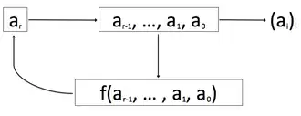 est appelée fonction de retour ou de rétroaction du LFSR[2]. Quand q=2, F2 est le corps des booléens et f est une fonction booléenne (linéaire). - Fonction génératrice