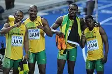 Le relais jamaïcain (Michael Frater, Asafa Powell, Usain Bolt et Steve Mullings) champion du monde à Berlin, en 2009.