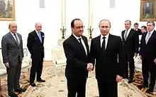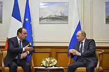 - Daniel Vernet, « Nicolas Sarkozy et François Hollande face à Poutine: deux styles, un même résultat », sur Slate, (consulté le ).