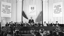 Lénine fait son retour en Russie en , accueilli par ses partisans au son de La Marseillaise, symbole universel de la révolution. Il prône la paix immédiate. Lorsque les bolcheviks s'emparent du pouvoir lors de la révolution d'Octobre 1917, leur premier acte de gouvernement est de présenter un décret sur la paix qui en appelle aux peuples contre les gouvernements pour instaurer la paix. Mais c'est finalement avec les gouvernements des Empires centraux que la paix séparée de Brest-Litovsk est signée le [30]. En réponse à ces négociations, Paris rompt ses relations diplomatiques avec Saint-Pétersbourg le [alpha 3],[31],[32].
