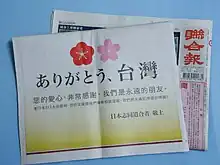 À la suite du séisme de 2011 de la côte Pacifique du Tōhoku, vingt milliards de yens de dons taïwanais sont parvenus au Japon[3].