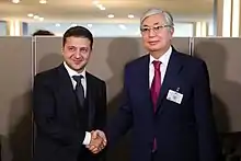 Le 28 novembre, Kassym-Jomart Tokaïev se rend à Moscou pour sa première visite à l'étranger après sa réélection la semaine précédente, et fait une nouvelle fois volte-face en louant les liens historiques entre le Kazakhstan et la Russie, tandis que son homologue fait l'éloge du « caractère spécial » des relations entre les deux pays[10]. S'agissant du conflit russo-ukrainien toutefois Kassym-Jomart Tokaïev, tout en adoptant un ton moins critique envers la Russie, fait part de sa tristesse en déclarant : « Nous ne devons pas permettre aux peuples fraternels russe et ukrainien de se séparer pour des dizaines, voire des centaines d'années avec des rancunes qui ne cicatrisent pas »[10].