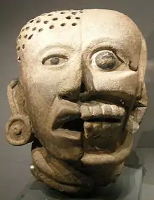 - Un symbolisme très poussé qui rend l'interprétation des représentations religieuses délicates (les représentations explicites de sacrifice humain sont rares chez les Mayas classiques, mais fréquentes sous forme de symboles). Ce symbolisme est encore plus poussé dans l'art de Teotihuacan. On a longtemps cru que le sacrifice humain n'y existait pas.