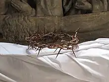 Saint Jean rapporte, dans la nuit du Jeudi Saint au Vendredi saint, que les soldats romains s'étaient moqué de la « royauté » du Christ en plaçant une couronne d'épines sur sa tête (Jean 19:12).