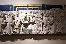 don d'une relique du lait par le comte Guido Guerra VI prieur de l'église Saint Laurent de Montevarchi. (Montevarchi, Collegiata di San Lorenzo Museum)