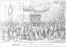 Collégiale de Montevarchi, autel et relique du saint Lait.- Procession religieuse autour d'une relique du Saint Lait.