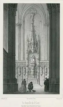 - La chapelle du saint Lait était une des merveilles de notre cathédrale ; l'élégance de ses sculptures en avait fait un des chefs-d'œuvre de l'art gothique. Elle était détruite bien avant la révolution. M. Louis Paris en a retrouvé le dessin ; il doit en publier l'histoire et la description.