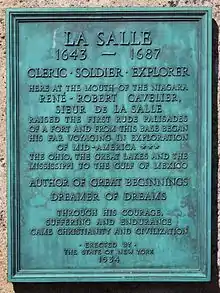 En , La Salle rassemble ensuite son équipage pour une nouvelle expédition. Laissant, en , le fort Crèvecœur avec vingt-trois Français et dix-huit Amérindiens, il atteint le confluent du Mississippi le . Le , l'expédition est en vue du golfe du Mexique. Le , il prend possession de ces vastes territoires au nom de la France et leur donne le nom de Louisiane en l’honneur du roi Louis XIV qui, peu reconnaissant, écrira au gouverneur de La Barre que cette découverte est « fort inutile et qu’il faut dans la suite empêcher de pareilles découvertes », même s’il lui ordonne d’y retourner et d’y implanter une colonie. À l’embouchure du Mississippi, près de l’actuelle Venice en Louisiane, La Salle enterre une plaque de cuivre gravée et érige une croix revendiquant le territoire pour la France[1].