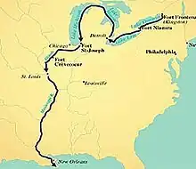 En 1683, sur son voyage de retour, il établit un nouveau fort (Saint-Louis) à la « roche affamée » sur le fleuve Illinois, pour remplacer le fort Crèvecœur. Tonti dirige le fort tandis que La Salle retourne une fois de plus en France afin de réunir des moyens pour une nouvelle expédition, dans le but d'installer un comptoir en Louisiane, à l'embouchure du Mississippi pour faciliter la conquête du Mexique[2].