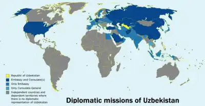 Voici les représentations diplomatiques de l'Ouzbékistan à l'étranger: