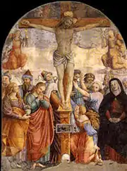 - La Crucifixion d'Ottaviano Nelli, fresque, Palazzo Trinci, Foligno, Italie