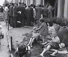 Ceux qui traversent la frontière du secteur de Berlin demandent leur admission d'urgence au centre d'accueil d'urgence de Marienfelde et sont ensuite transportés par avion vers l'Allemagne de l'Ouest, où ils sont d'abord hébergés dans des camps de réfugiés. L'érection du mur de Berlin en août 1961 met un terme brutal à cet exode massif. En conséquence, beaucoup tentent de fuir via des pays tiers (pays du Pacte de Varsovie) à partir desquels il est possible de voyager plus loin ou de fuir vers la République fédérale (prétendument plus facilement). Les évasions par des tunnels à Berlin sont spectaculaires : on compte au moins 39 tentatives, comme par les tunnels 29 et 57, et également des évasions par les airs avec des montgolfières artisanales, des avions agricoles[17], des avions légers, des planeurs, des submersibles, des camions spéciaux, des sacs en peaux de vache suspendus à une tyrolienne installée du jour au lendemain sur la Maison des Ministères[18], et également par voie maritime par la mer Baltique[19]. Cependant, ces évasions souvent risquées ne représentent que quelques centaines de cas chaque année. Les évasions en train sont rares, comme dans le cas de la Locomotive 234 ou (à la frontière tchèque) le train 3717.