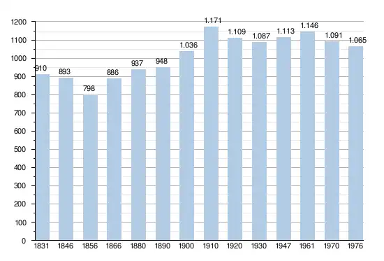 - Sources : INS, Rem. : 1831 jusqu'en 1970 = recensements, 1976 = nombre d'habitants au 31 décembre[2].