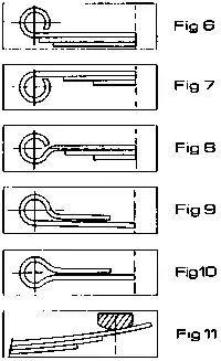 - les attaches peuvent prendre des formes vraiment diverses dites à œil droit (6), renversé (7), épaulé (8), droit à patte (9), épaulé à patte (10), appui à glissoir (11).