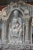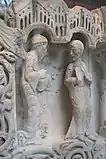 Réalisé en pierre de liais probablement peinte en couleurs, il comporte trois parties, la Vierge en majesté, l’Annonciation et le Baptême du Christ par Saint Jean-Baptiste[2].
