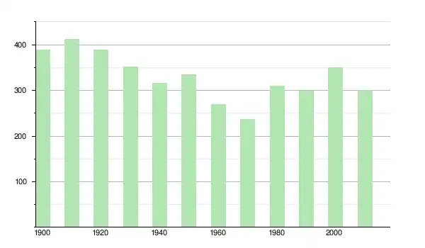 | 1940 | 315 | ▼ −10,26 % | |