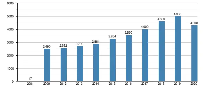 Les ventes mondiales en 2015 étaient de 30 % en Asie du Sud-Est, 10 % au Japon, 30 % en Europe et Moyen-Orient et 30 % en Amérique[23].