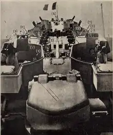- calibre : 152 mm modèle 1936, tourelle modèle 1936 (9 pièces à l'arrière, en 3 tourelles triples, une axiale et deux latérales) ;