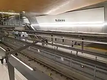La station, la plus profonde du réseau, est dotée de quais latéraux, aménagés à 26,5 m sous le niveau de la rue[2],[3].