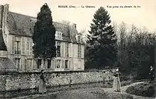 - Château, entre la rue du Château et l'impasse Abbé, près de la RD 200 : l'eau de la source du château a été mise en bouteille entre 1893 et le début de la Première Guerre mondiale, comme eau de table et eau de régime autorisée par l'État et approuvé par le conseil d'Hygiène[50]. C'est un bâtiment sobre en pierre de taille, de dimensions modestes, et à un étage. Le corps principal de sept travées est couvert d'un toit mansardé. L'aile secondaire en retour d'équerre est très basse et sans caractère. Les deux ailes cantonnent une cour ouverte vers le sud-ouest et le sud-est, où se situait une fontaine alimentée par la source.