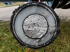 On peut également parler de champ disruptif dans le cas des câbles électriques, où le cœur (appelé également l'âme) est séparé de la gaine de masse par un isolant. Ici encore, un champ électrique radial trop élevé conduit au claquage de cet isolant, endommageant irréversiblement le câble.