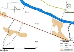 La commune est bordée sur son flanc nord-est par la Vienne (0,812 km), dont elle constitue la limite communale. Le réseau hydrographique communal, d'une longueur totale de 1,95 km, comprend un autre cours d'eau notable, la Veude (1,004 km), et trois petits cours d'eau pour certains temporaires[1],[2].
