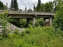 - Pont du chemin de fer du Canadien National (ex-chemin de fer Grand Tronc), sur la ligne ferroviaire reliant Hervey-Jonction et le Lac Saint-Jean. Ce pont de fer est situé à 0,4 km en amont du pont de la route 153.