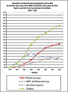 Avec ses 20 118 habitants en 2021, elle est le chef-lieu d'une municipalité régionale de comté (MRC) comprenant 34 509 habitants[9]. Elle est aussi au centre d'un bassin économique de près de 90 000 habitants couvrant le territoire des MRC de Kamouraska, Témiscouata et des Basques.