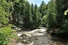 La rivière traverse le territoire Hurons-Wendats de Wendake, enclavé dans la ville de Québec. Des rapides et cascades sont présents dans cette section sous le nom de Kabir Kouba soit « la rivière aux mille détours » en wendat. Le parc de la Falaise et de la chute Kabir Kouba le long des cascades à cet endroit possède un pavillon d'interprétation et des sentiers permettant entre autres d'observer la chute Kabir Kouba haute de 28 mètres dans un canyon de 42 mètres de haut, une riche flore et de fossiles datant de plus 455 millions d’années.