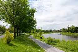 - 6,5 km vers le sud-est en zone urbaine en passant notamment dans les cartiers Château-d'Eau et Village-des-Hurons, jusqu'à un coude de rivière ;