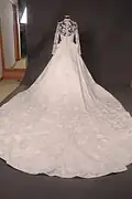 L’annonce formelle de la robe et de son créateur n’a eu lieu qu’à la descente de la mariée pour son entrée dans l’abbaye de Westminster avant la cérémonie[2]. Remarquée pour son design, son symbolisme et l’influence pressentie sur la tendance occidentale en robe de mariée, la robe était très attendue et a été largement commentée dans les médias. Des répliques de la robe ont été produites et vendues, et l’originale est exposée au palais de Buckingham[3].