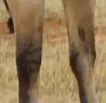 Les zébrures peuvent aussi être présentes sur les jambes. Elles sont fréquentes sur les chevaux de robe isabelle ou souris[18]