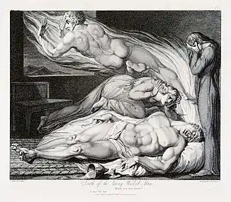 Death of the Strong Wicked Man (1808), l'une des gravures de Luigi Schiavonetti d'après William Blake pour Le Tombeau, de Robert Blair.