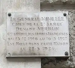 En 1921, il est nommé président de la commission interalliée de Berlin. Atteint par la limite d’âge en , il quitte le conseil supérieur de la guerre et est maintenu en activité sans limite de durée. Mort dans son lit en 1924 aux no 33-35, rue de la Tour dans le 16e arrondissement de Paris (où une plaque lui rend hommage), son corps est inhumé au cimetière de Passy, suivi par un cortège, le [11]. Enfin il est transféré dans le caveau des gouverneurs aux Invalides le [4]. Une cérémonie protestante a lieu au temple protestant de l'Étoile vers 8 h 30, puis le ministre de la Guerre André Maginot prononce l'éloge funèbre[12],[13]. Sa seconde épouse, née Marie-Joséphine Glamard, est morte en 1950 à 87 ans.
